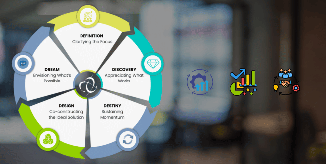 - Intentional Change Theory and Appreciative Inquiry to connect business goals with personal motivation.