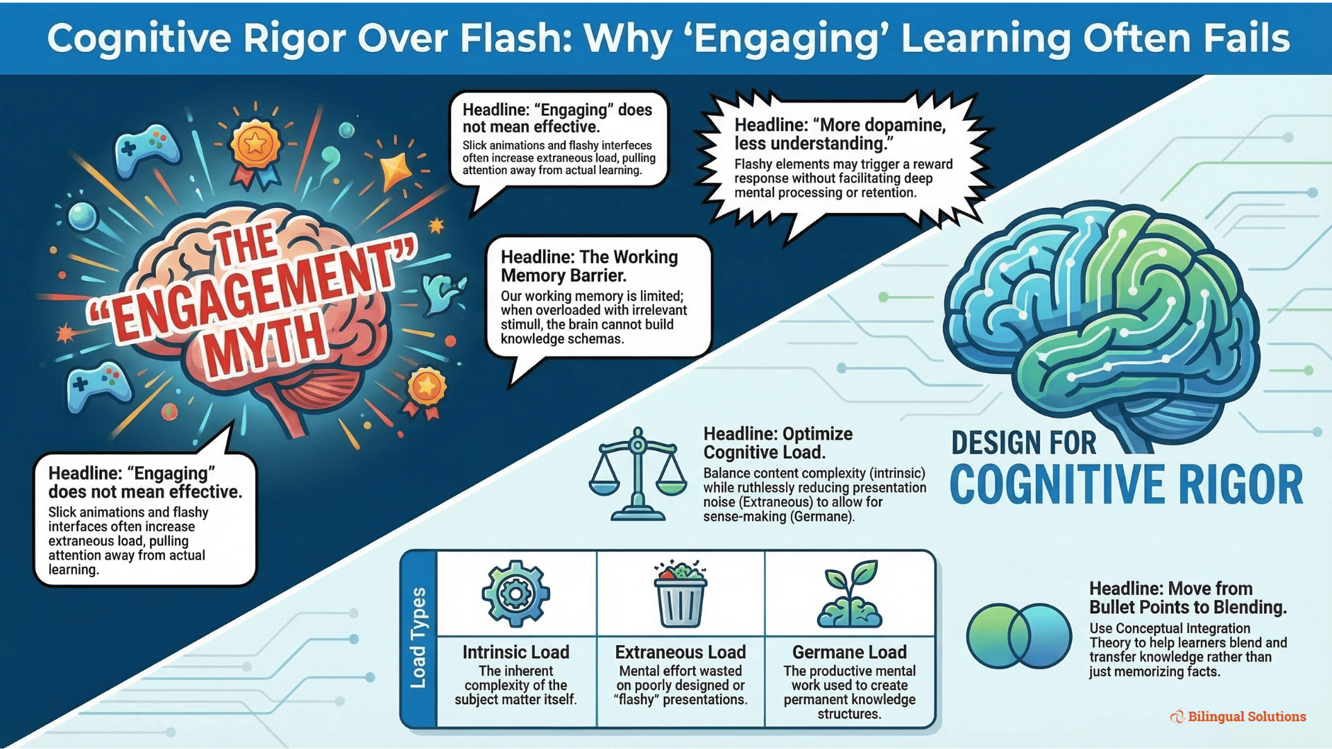 🎆 Flashy interfaces often increase extraneous load by pulling attention toward irrelevant stimuli. The result? More dopamine, less understanding.